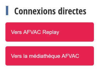 Dans votre espace membre, cliquez sur le bouton " Connexions directes > Vers AFVAC Replay " ou " Connexions directes > Vers la médiathèque ".