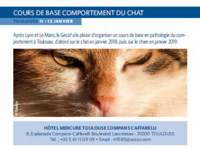 10 juillet 2017G.E.C.A.F.2017-07-10Cours de base Comportement du chat Toulouse 11 au 13 janvier 2018