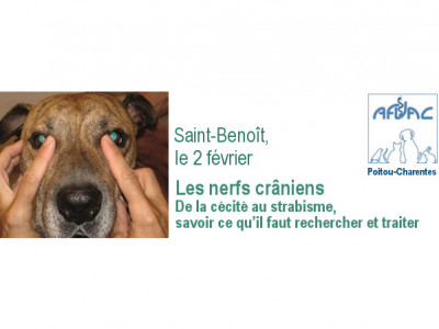 Grâce à Laurent Cauzinille, diplômé du Collège Américain de Médecine Interne et du Collège Européen de Neurologie exerçant au C.H.V. de Frégis, nous les passerons en revue en 3 fois. Il traitera l’examen clinique, le choix des examens complémentaires et les traitements. La première étape sera Poitiers et concernera la neuro-ophtalmologie. Nous étudierons la cécité centrale (nerf II), les anisocories (nerf III et sympathique) et les strabisme/ophtalmoplégie (nerfs III, IV et VI). Les autres étapes seront Niort et Châtellerault.